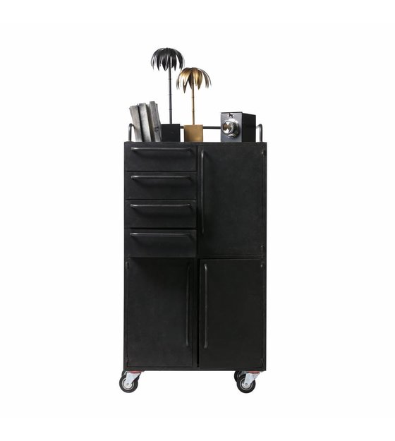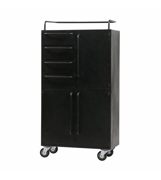 Denne Black Beauty kabinet er et robust og robust opbevaringsskab fra den nye BePureHome kollektion, der giver masser af lagerplads. Dette skab er lavet af jernmalet sort. Hjulene under kabinettet gør dette skab let at flytte.
