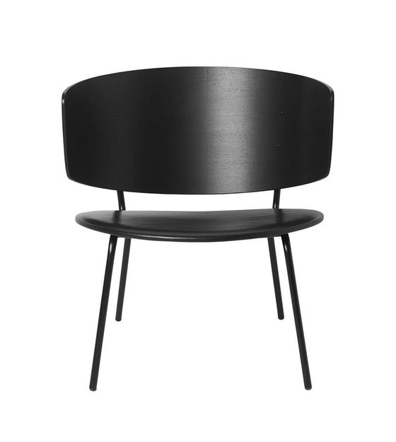Ferm Living Chaise longue Herman en cuir noir bois métal 68x60x68cm