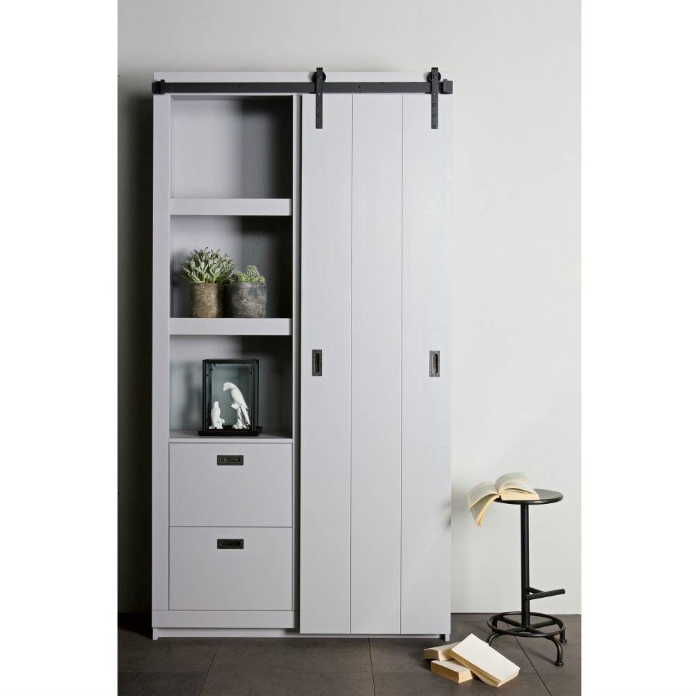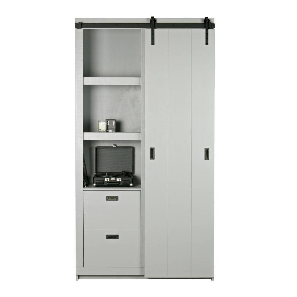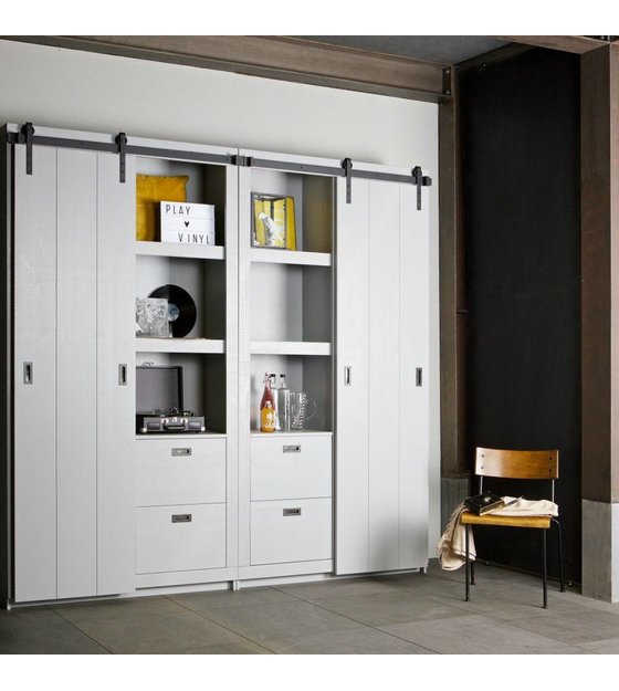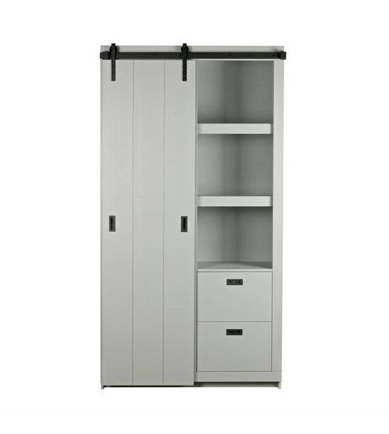 Med Barn skydedørskab er du sikker på at skabe et sejt look. Den smukke skydedør kan skubbes til begge sider, og skabet har forskellige brædder og skuffer på både venstre og højre side. weitere Informationen...