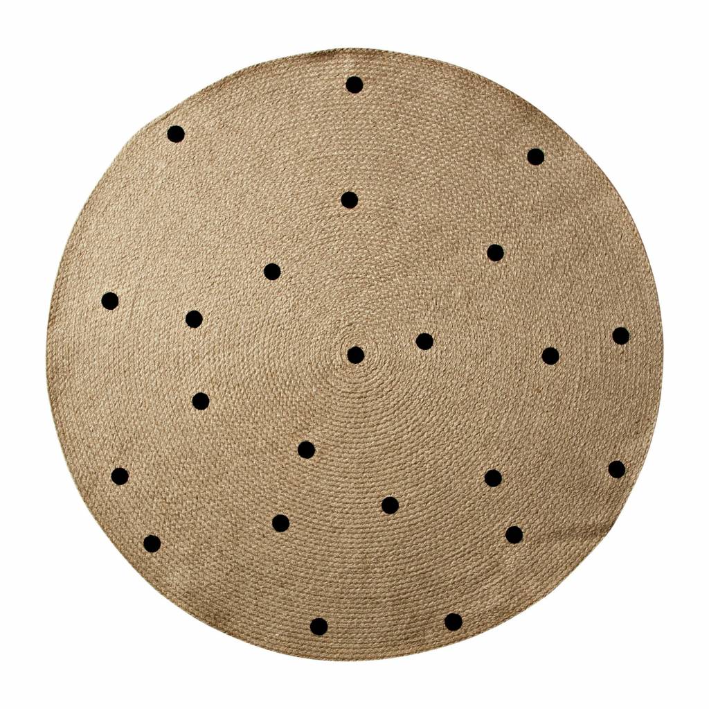 Denne store runde tæppe i naturlig jute tilbyder farvekoordineret konfetti motiver lignende trekanter, punkter og linjer. Den naturlige farve denne holdbare, bæredygtige materiale klæder ethvert interiør. weitere Informationen...