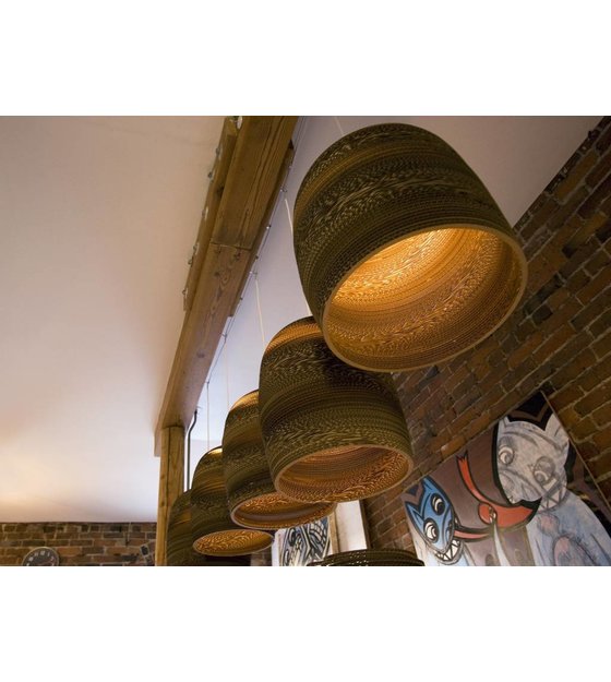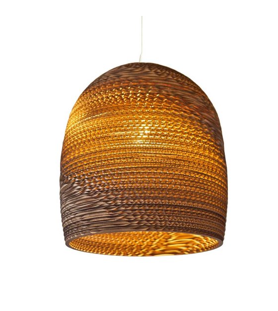 Vi elsker disse lamper ved Gray Pants. Denne brune lampe lavet af genbrugspap er en reel blikfang! Dette Bell hængende lampe er særlig behageligt lys og egnet til hjem, men også for gæstfriheden! weitere Informationen...