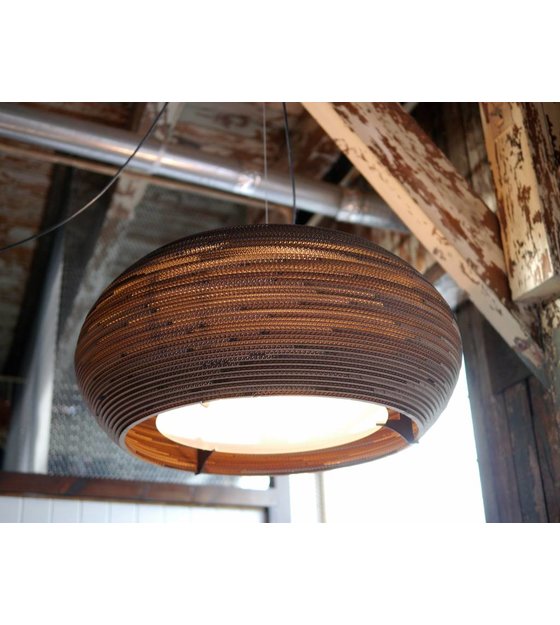 Vi elsker disse lamper ved Gray Pants. Denne brune lampe lavet af genbrugspap er en reel blikfang! Denne Ohio hængende lampe er særlig behageligt lys og egnet til hjem, men også for gæstfriheden! weitere Informationen...