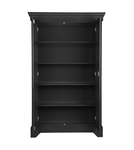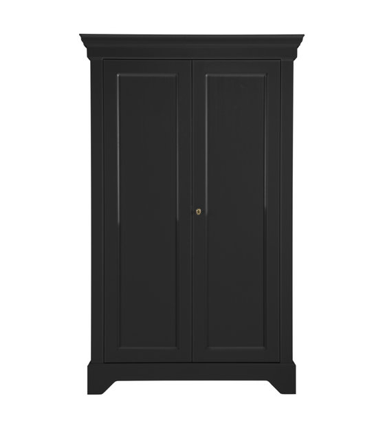 Isabel-garderobeskabet er tidløst og passer til ethvert interiør. Skabet er lavet af massiv sort fyrretræ. Skabets indre består af 4 hylder. Dørene er udstyret med metalhængsler og lås med nøgle. weitere Informationen...