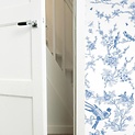 måle 97,4x280cm Spor dimension 48,7x280cm Antal spor 2 farve blå, hvid materiale Vævet tapet (intelligent papir) 165 gram / suppleringsmåtten