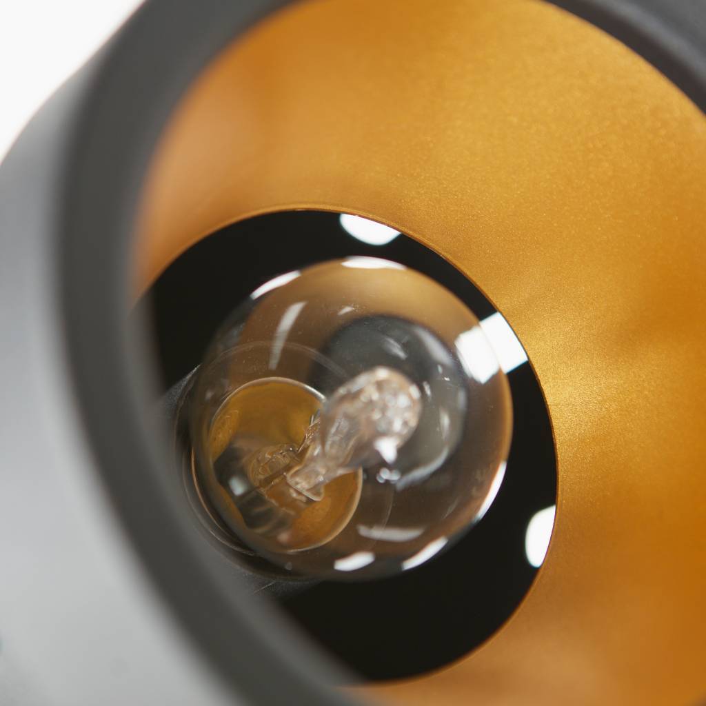 Bente gulvlampen sætter dig i rampelyset! Denne højdejusterbare lampe (92-162 cm) er en god tilføjelse til dit interiør. Rammen er lavet af metal, som er malet sort. Lampen har en diameter på 25 cm. Lampeskærmen har en højde på 12,5 cm og en diameter på 13 cm. Indersiden af lampeskærmen er gylden.