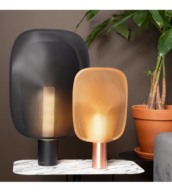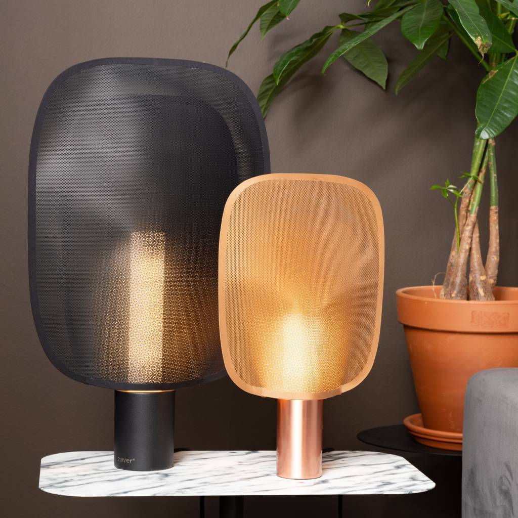Denne bordlampe Mai van Zuiver er et rigtigt billede. Når du tænder lampen, kommer du gennem hullet i lampeskærmen en speciel lyseffekt. Lampen er lavet af pulverlakeret sort metal. weitere Informationen...