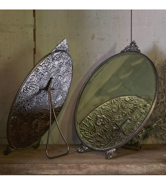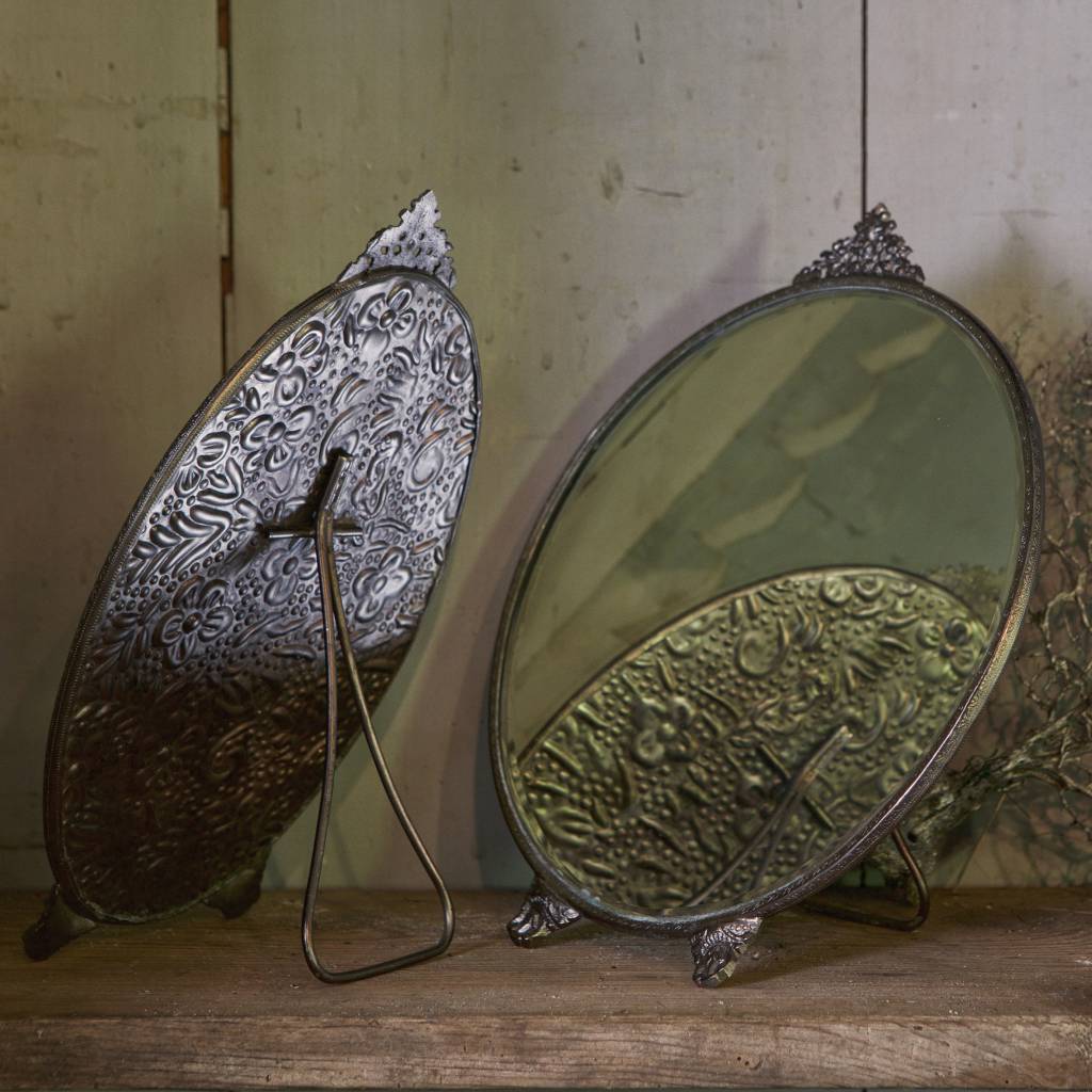 Et smukt romantisk spejl med et blik i fortiden, dette er BePureHome Posh spejl. Spejlet er lavet af metal i farve messing antikke og er 26 cm høj, 22,2 cm bred og 1 cm dyb. Når spejlet er udfoldet, har det en maksimal dybde på 10 cm. Posh spejlet er smukt på et antik messing sidebord eller i et showcase. Kan også fås i ovalt design.