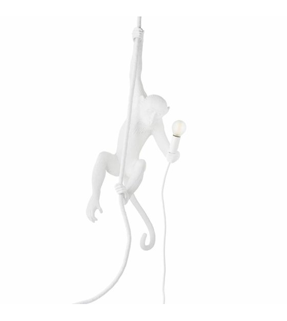 Jeg vil blive fordømt ... Snart afhænger af dig en abe på væggen! Denne abe hængende lampe fra Seletti er indrettet i hvide og lavet af plastik. Aben har en E14 lampe i hånden. weitere Informationen...