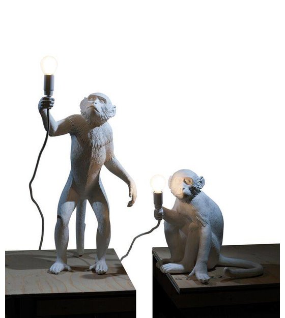 Heee fræk abe! Senere er der på dit hus pludselig en abe på bordet! Dette Monekey abe lampe møde i Seletti s slickly i hvid og lavet af plastik. Aben har en E14 sokkel lampe i hånden. weitere Informationen...
