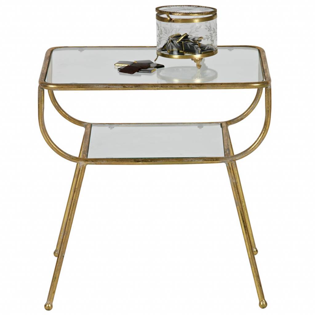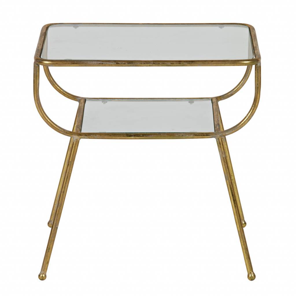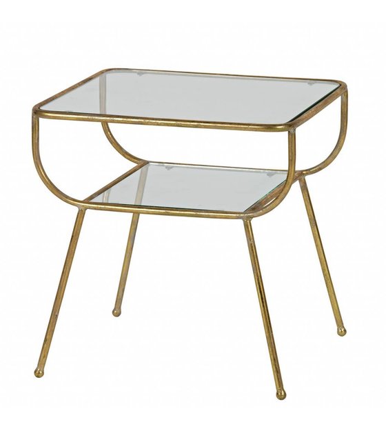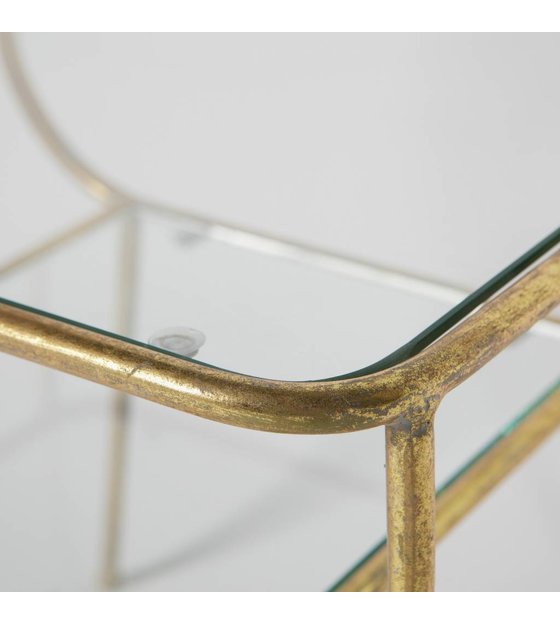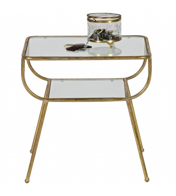 Et sidebord med et luksuriøst udseende! Kombinationen af metal (jern) med den antikke messingfinish og hylderne af glas giver den fantastiske sidebord dette udseende. Den fantastiske sidebord er et reelt aktiv for ethvert værelse!
