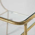 Et sidebord med et luksuriøst udseende! Kombinationen af metal (jern) med den antikke messingfinish og hylderne af glas giver den fantastiske sidebord dette udseende. weitere Informationen...
