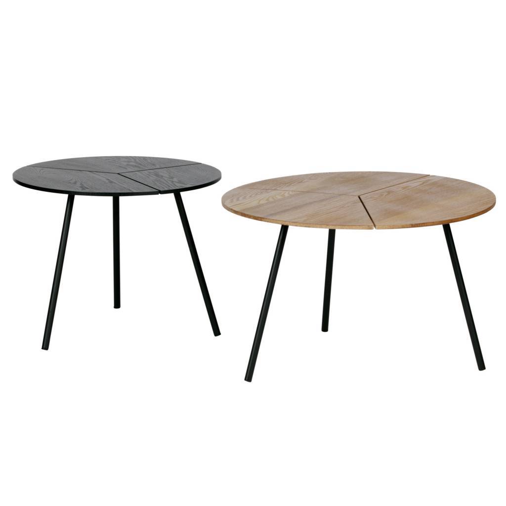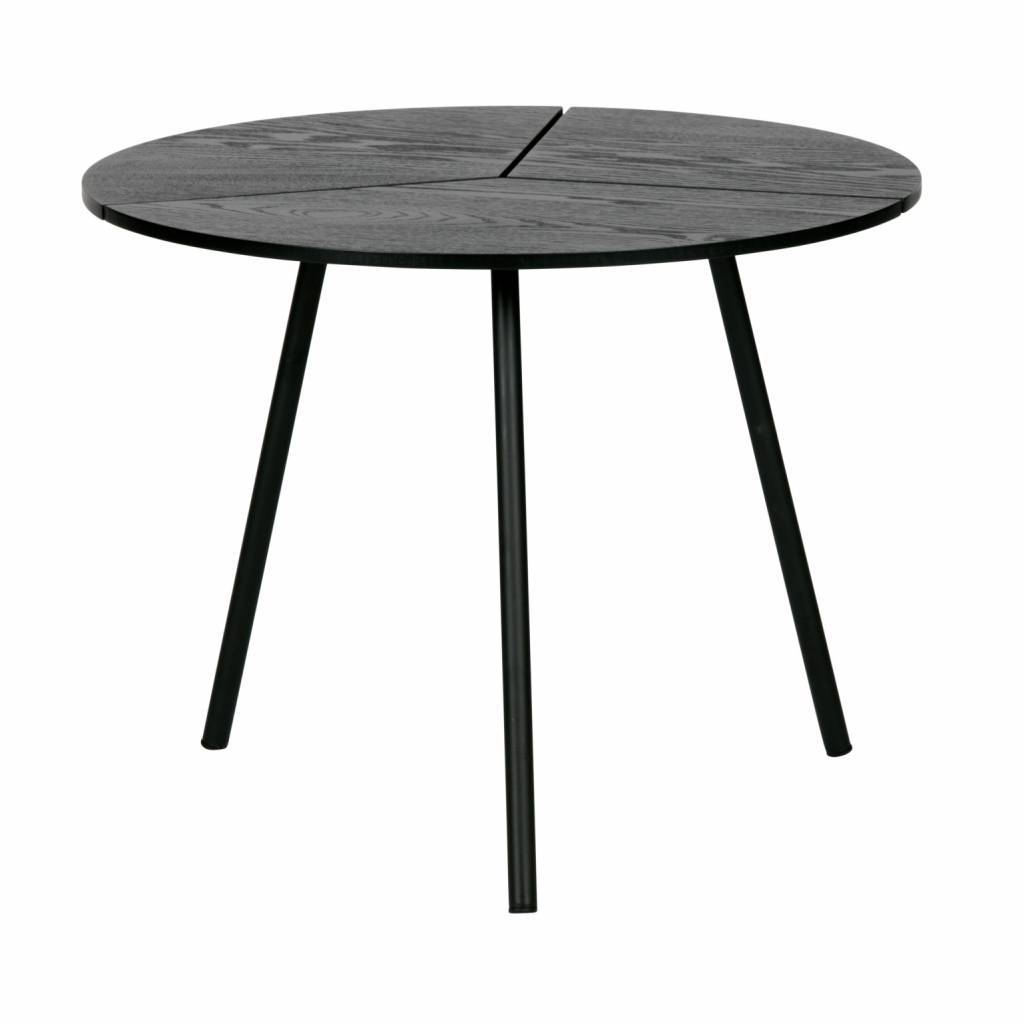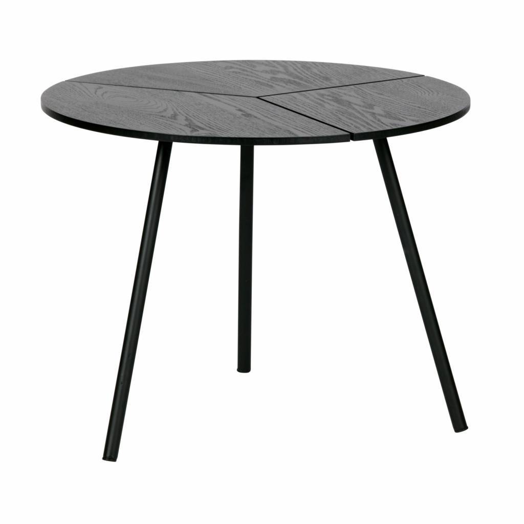 Ny i samlingen af WOOOD eksklusiv er dette smukke design sidebord Rodi M. Sidebordstabellen Rodi består af en kombination af aske og MDF og er malet matt sort. Tallerkenen af bordpladen består af tre dele, hvilket giver bordet en meget speciel karakter. Bordpladens tykkelse er 1 cm, og den gennemsnitlige størrelse har en diameter på 48 cm.