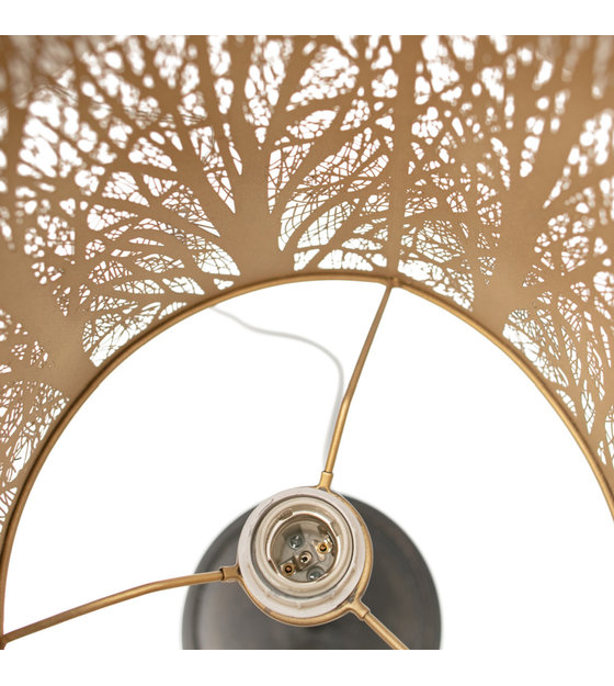 Keto er en bordlampe i metal med et smukt gyldent interiør. Skyggen har et udskåret grenmønster, der spreder lyset indeni og giver den en legende glød! Fås også som gulvlampe. weitere Informationen...