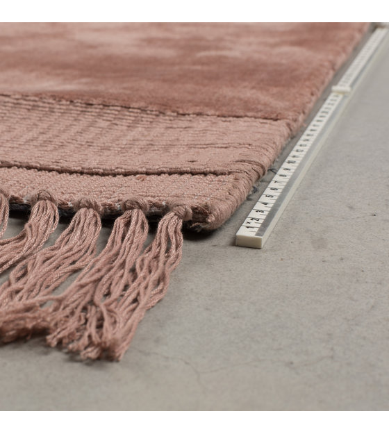 Blink van Zuiver-tæppet er et moderne tæppe, der er lavet helt i hånden. Der er legende frynser på tæppets korte sider. For at undgå at glide har undersiden et skridsikkert lag lavet af latex og bomuld. weitere Informationen...