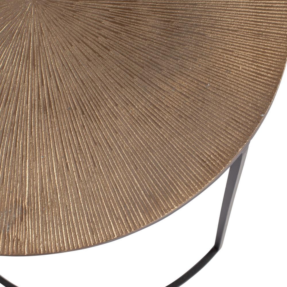 Die Beistelltische Fara sind ein schönes 2er-Set! Die goldene hat oben ein Streifenmuster und die schwarze hat oben eine Art Dellenmuster. Man kann sie zusammenschieben, aber auch einander gegenüber, so dass die Beine unterschiedlich sind! weitere Informationen...