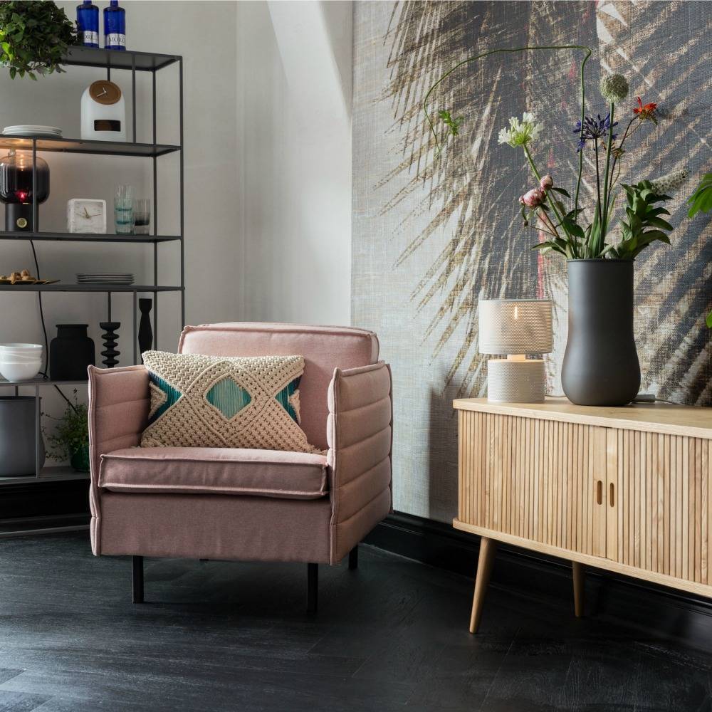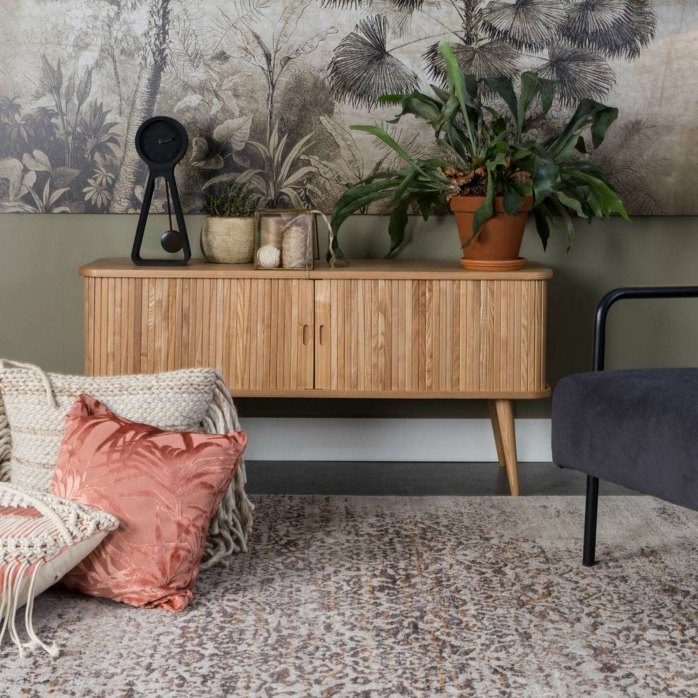 Das Friseursideboard hat einen Retro-Look, aber einen modernen Look. Hergestellt aus Eschenholz und mit 2 Glasböden auf der Innenseite. Diese werden durch die Schiebetüren verdeckt, was ein schönes Detail ergibt. weitere Informationen...