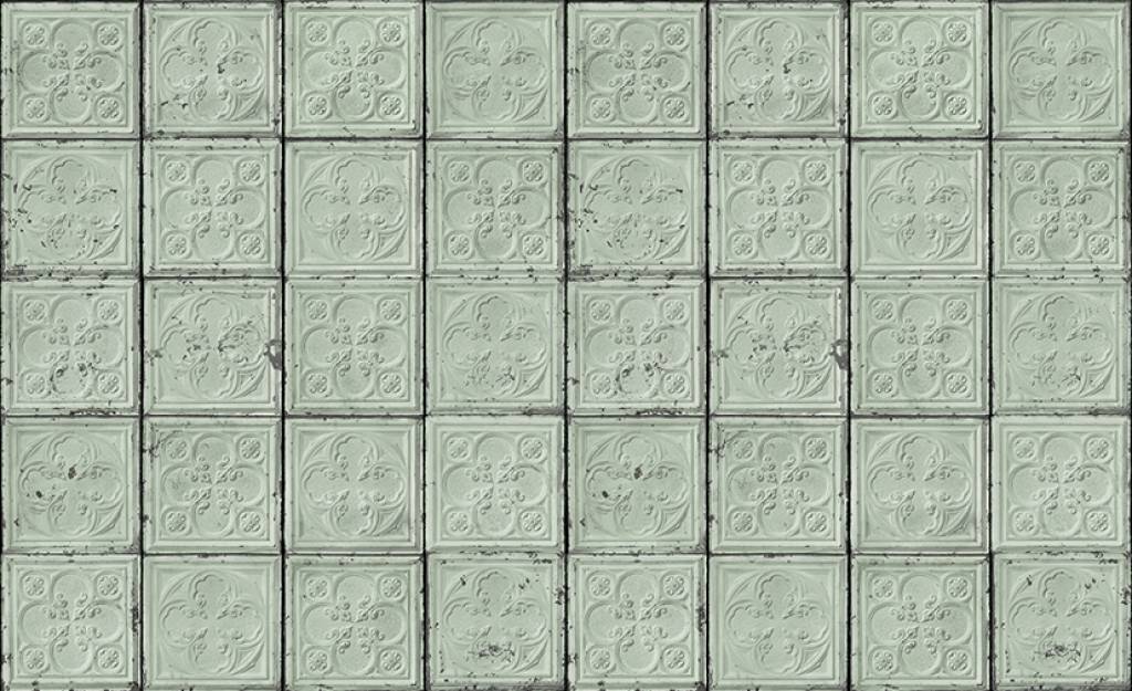 Fliesentapete Tin-05 mit Blumenmotiv in mint von Brooklyn Tins. Kein Tapetentisch benötigt für diese moderne Tapete! Gibt Ihre Wände einen altmodischen twist! weitere Informationen...
