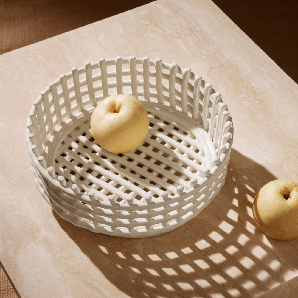 Ceramic Centrepiece von Ferm Living eignet sich ideal als Obst- oder Brotkorb, sieht aber auch als Dekoration im Zimmer toll aus! Die geflochtenen Schalen sind handgefertigt und daher jedes Stück ein Unikat. Neben weiß auch in verschiedenen Farben erhältl weitere Informationen...