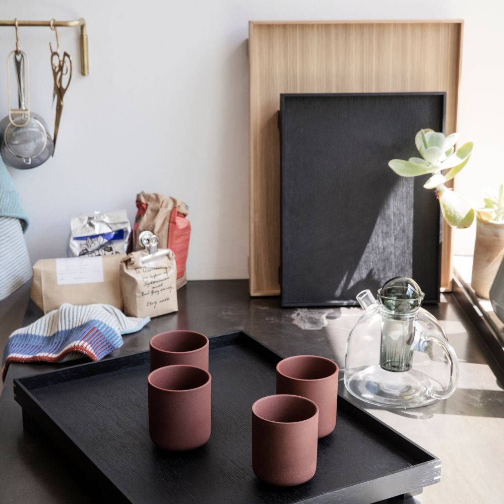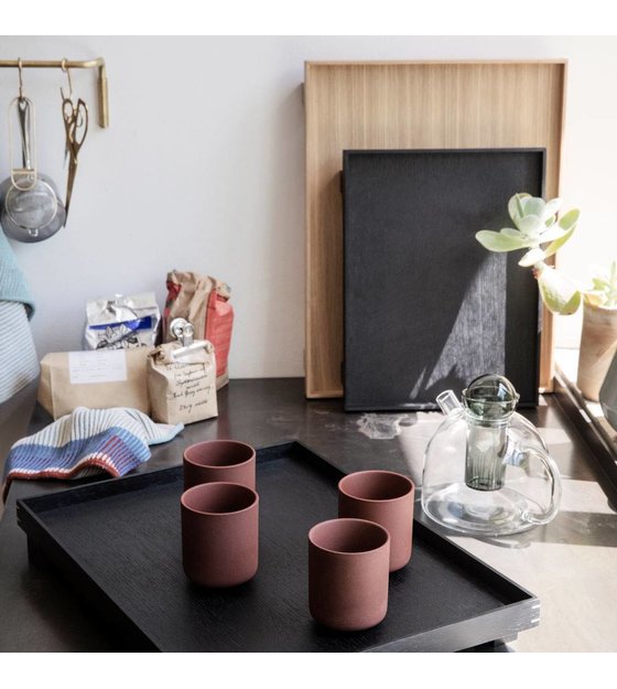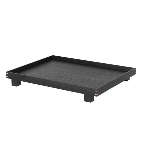 This wooden tray from Ferm Living is perfect for serving food or drinks. The tray is inspired by Japanese culture and is made of oak with a PU coating. Also available in natural brown or a size smaller. weitere Informationen...