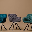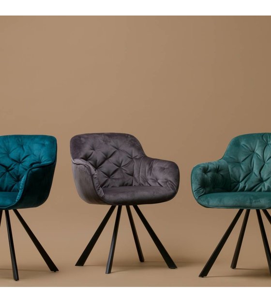 The dining chair Elaine is available in the colors anthracite, deep sea and ocean. There is also an Elaine armchair available. The armchair is only available with the velvet fabric in the color anthracite.