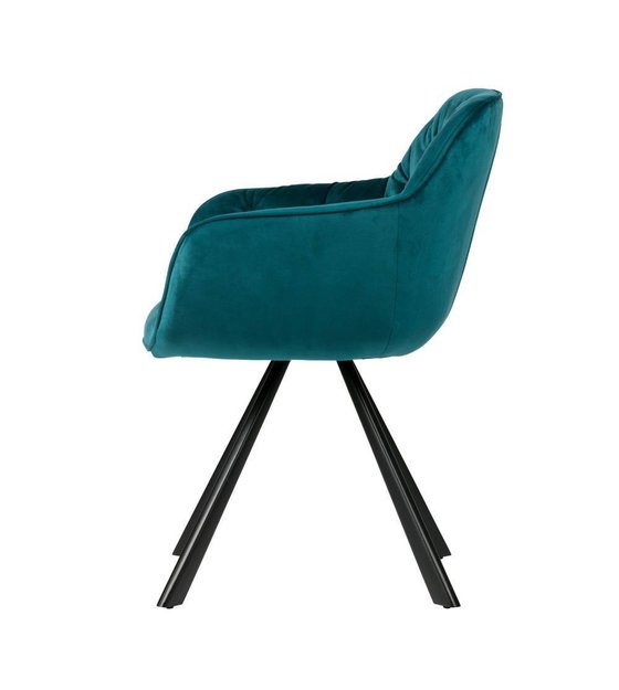 WOOOD Elaine dining chair is a stylish dining chair with a seat part, which is decorated in a beautiful velvet fabric (100% polyester). The armrests and the backrest are buttoned low. The legs are made of metal and painted black. weitere Informationen...