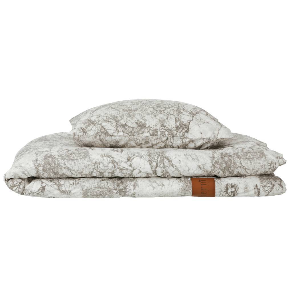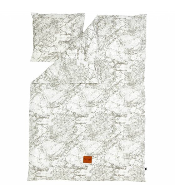 Measurements: Duvet 140x200cm, pillowcase 63x60cm Color: gray, white Material: 100% organic cotton Other: first time wash cold, 40 ° C. Warm iron links.