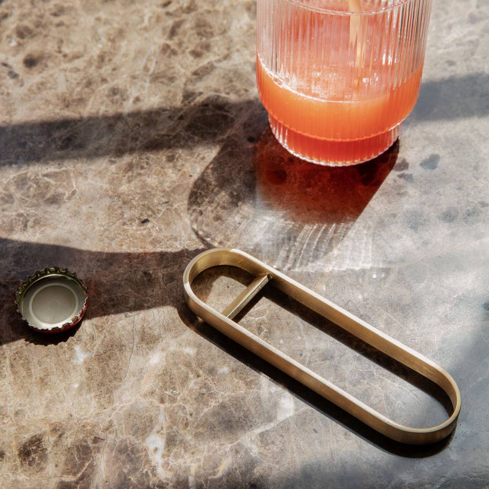 Pop that bottle! With this stylish bottle opener from Ferm Living you can easily open your drink. The opener is made of gold steel and has a matte polish. Combine the bottle opener with the rest of the Fein collection from Ferm Living. weitere Informationen...