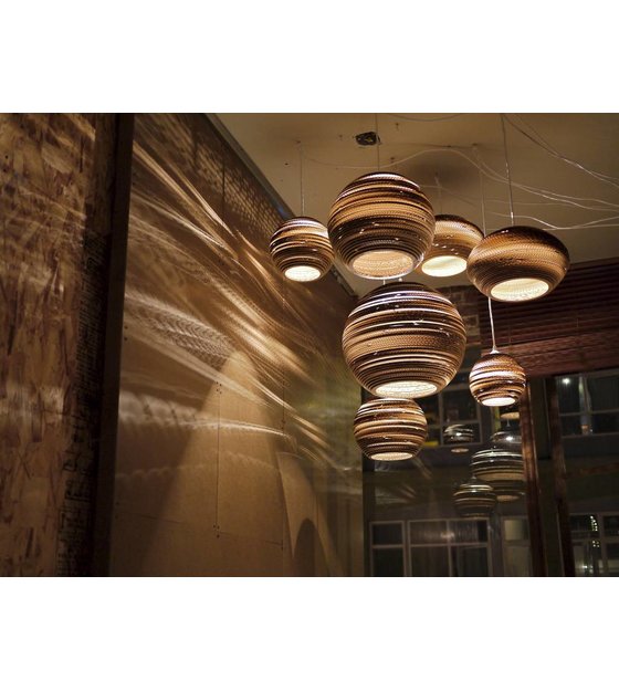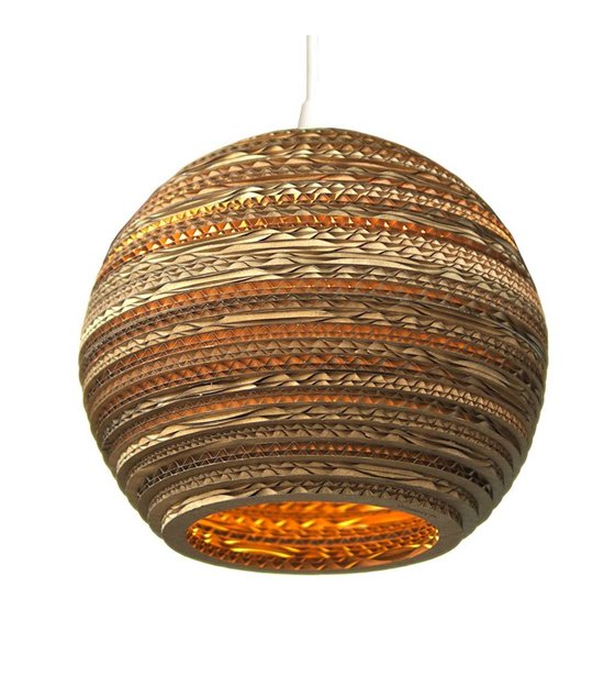 We love these lamps by Gray Pants. This brown lamp made of recycled cardboard is a real eye-catcher! This Moon hanging lamp is particularly pleasant light and suitable for home but also for the hospitality! weitere Informationen...