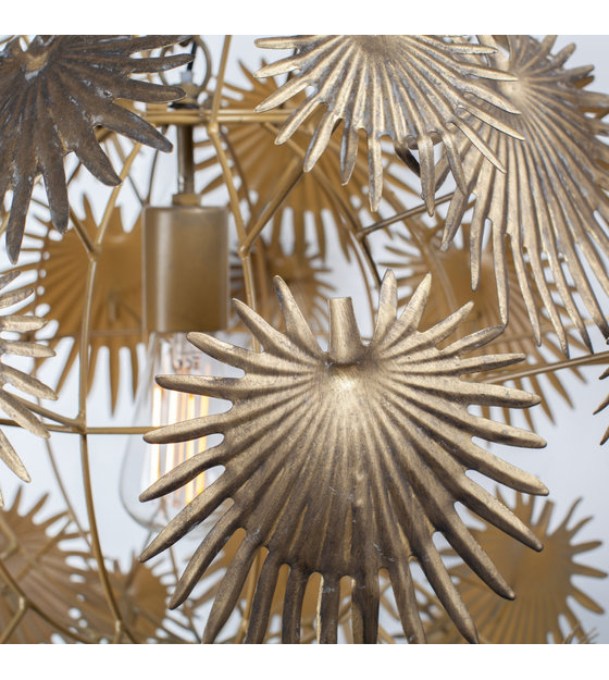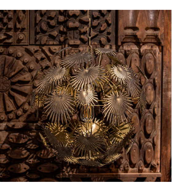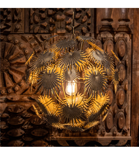 Whether switched on or off, the Atom pendant light is a true work of art. The lamp consists of many metal palm leaves that together form an elegant sphere. And when you switch them on, you can enjoy a particularly playful light. What an atmosphere! weitere Informationen...