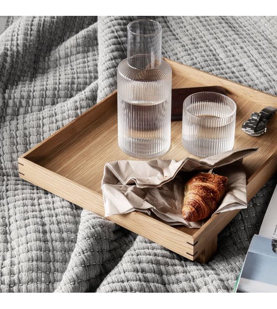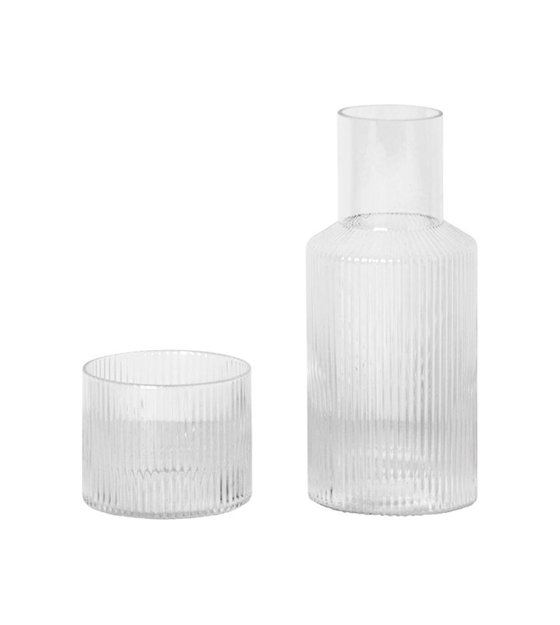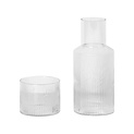 This beautiful decanter set from the Ripple collection by Ferm Living has a stylish design. The set is perfect for filling liquor or for use as an accessory. The set consists of a decanter and a glass. weitere Informationen...