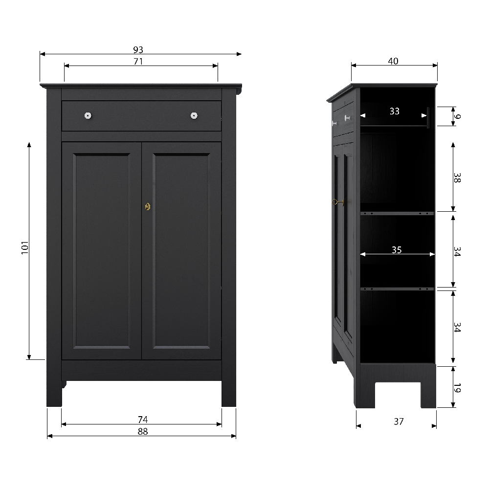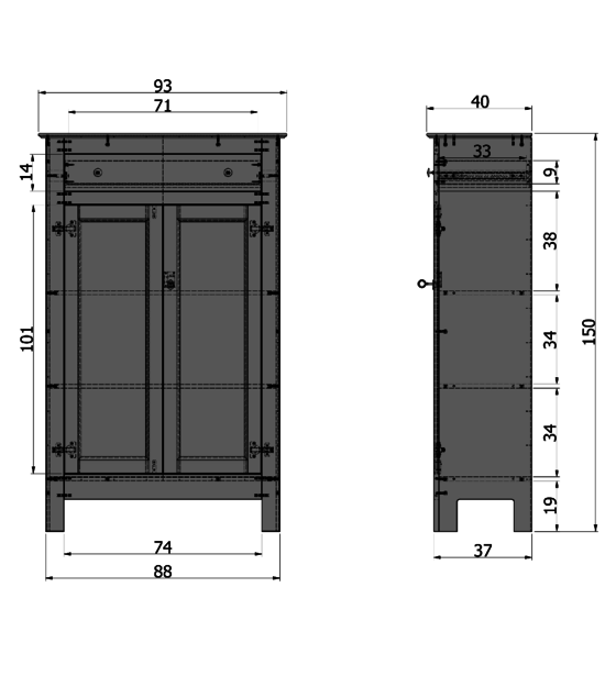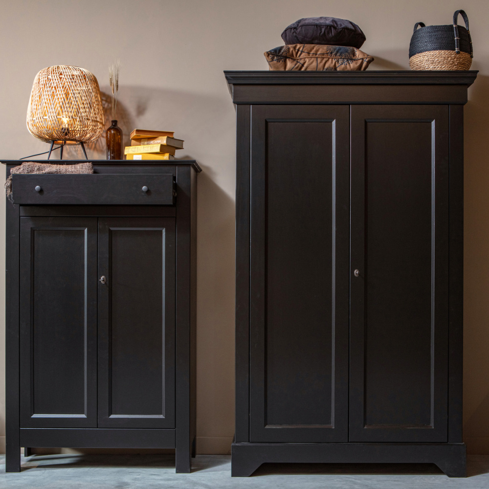 The Eva cabinet is timeless and suits any interior. The interior has three wide shelves and a practical drawer in the upper area. The doors have metal hinges and a key lock. Also available in grey. weitere Informationen...
