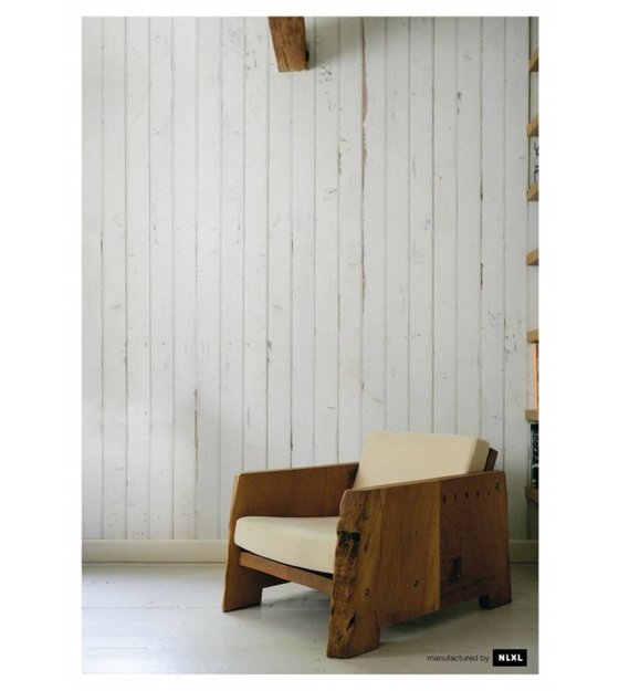 Waste wood wallpaper 08 of PIET HEIN EEK wood wallpaper with natural and white tones by Piet Hein Eek, made in Holland. Real colors in high resolution and wipe with a soft cloth. Wallpaper Class A, dobbellagige woven wallpaper (non-woven). weitere Informationen...