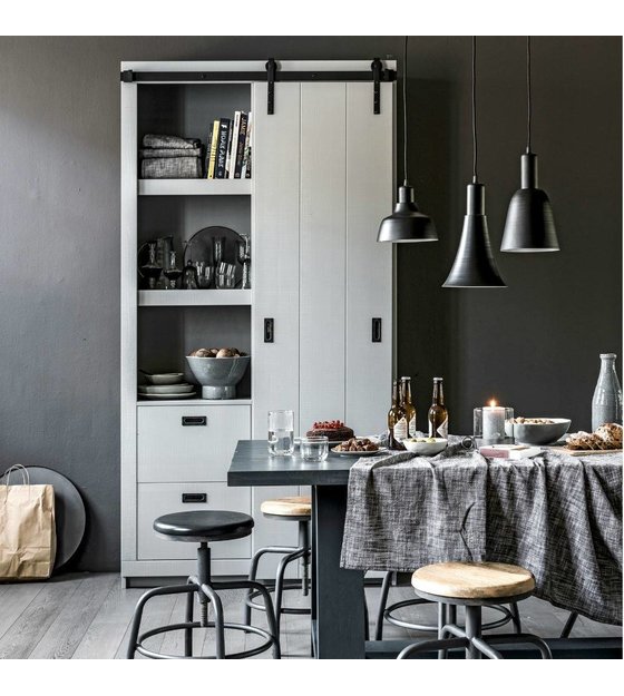 With the Barn sliding door cabinet you are sure to create a cool look. The beautiful sliding door can be slid to either side and the cabinet has different boards and drawers on both the left and right. weitere Informationen...