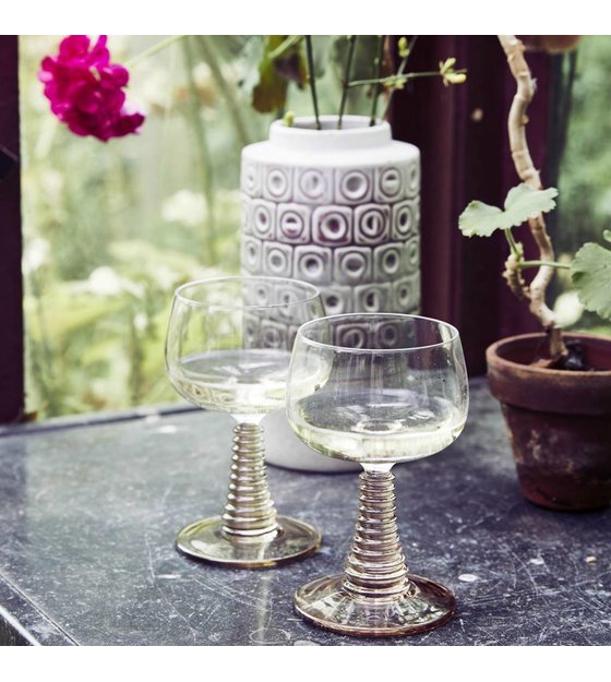 What a beauty! This beautiful wine glass from HK Living looks great on a laid table. The wineglass is made of transparent glass with a green twisted foot. Let the wine flow! weitere Informationen...