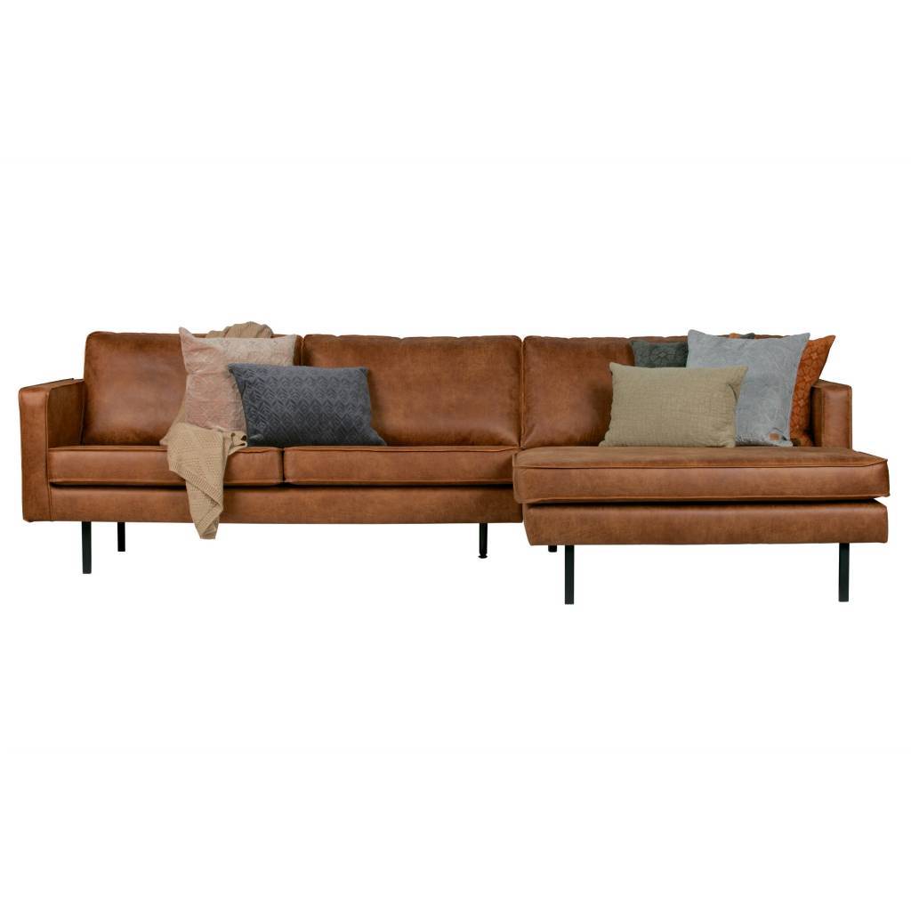 El programa de asientos Rodeo de la marca BePureHome es moderno, robusto y contemporáneo. Este sofá chaise longue a la derecha es generoso, ofrece mucho espacio para sentarse y presenta un tejido duradero de cuero reciclado. El marco delgado y los cojines sueltos hacen que el sofá sea discretamente visible en la sala de estar.