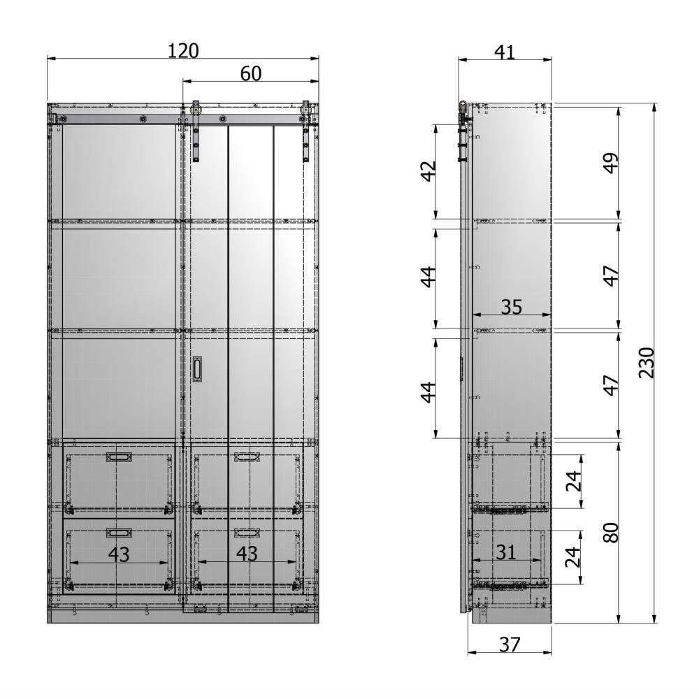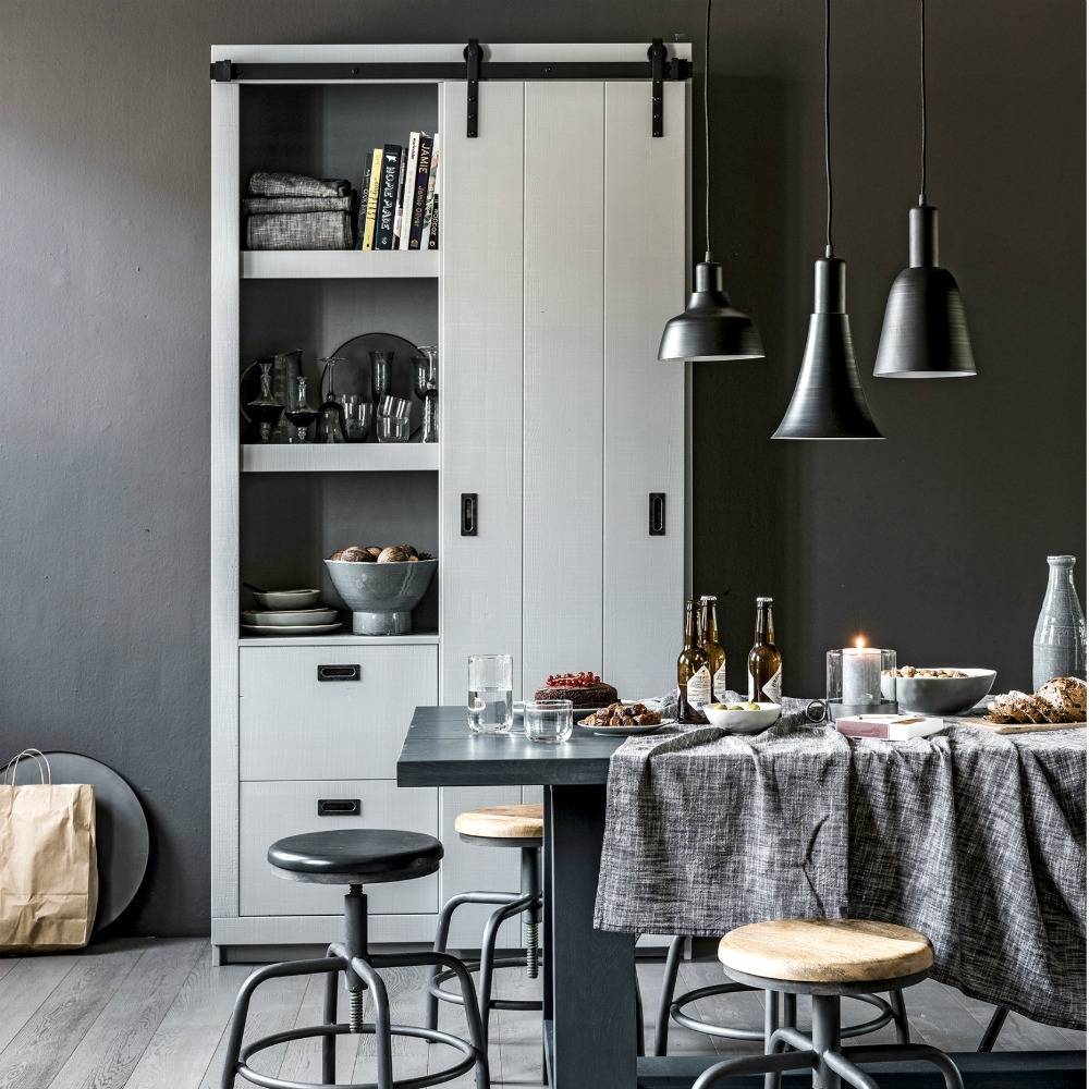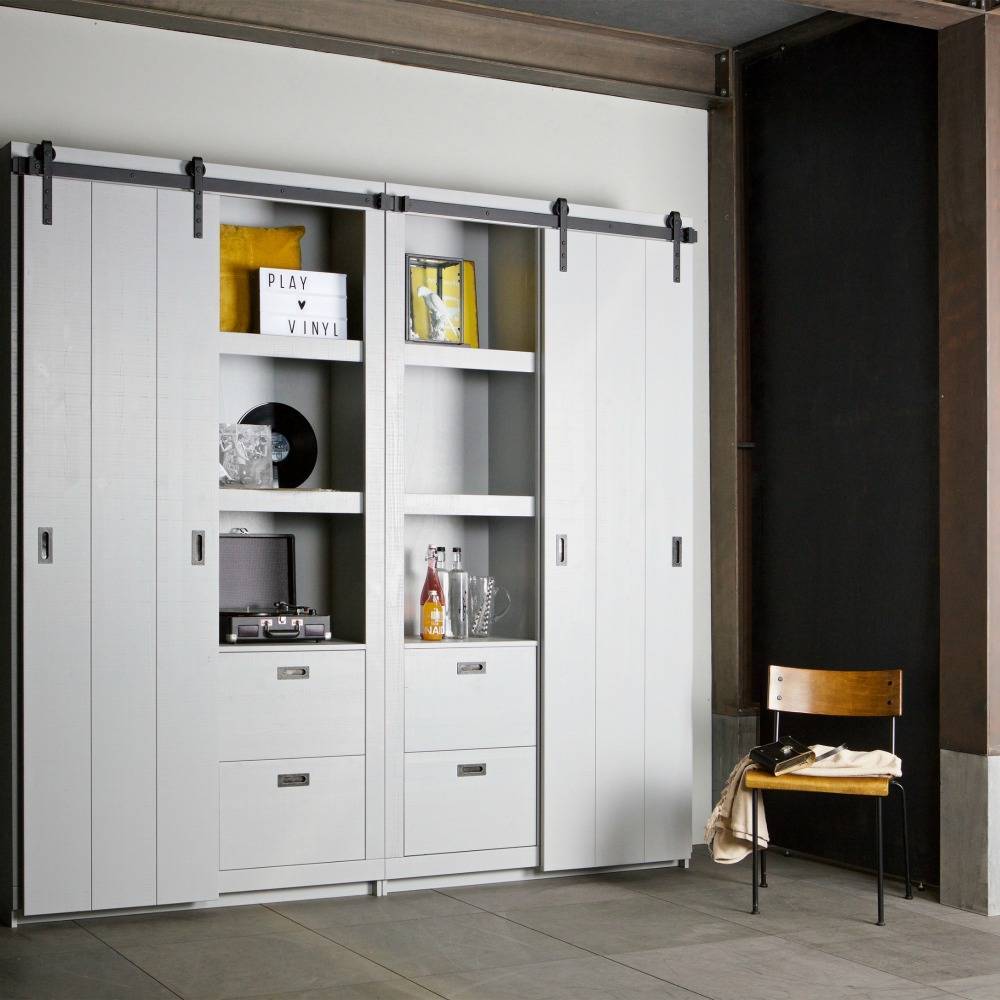 Con el gabinete de puerta corrediza Barn seguramente creará una apariencia genial. La hermosa puerta corrediza se puede empujar hacia cualquier lado y el gabinete tiene diferentes tableros y cajones tanto a la izquierda como a la derecha. weitere Informationen...