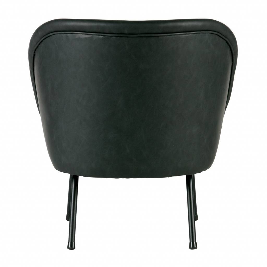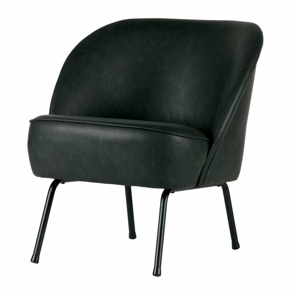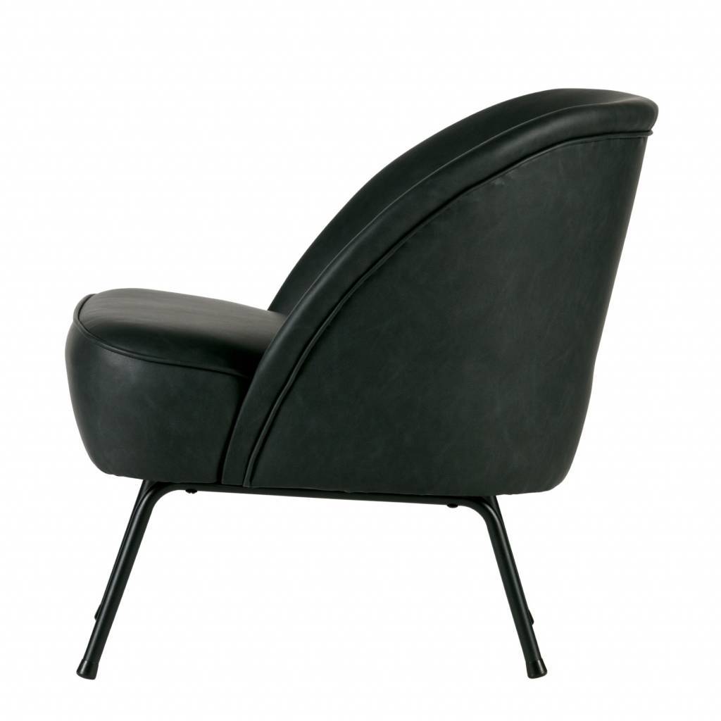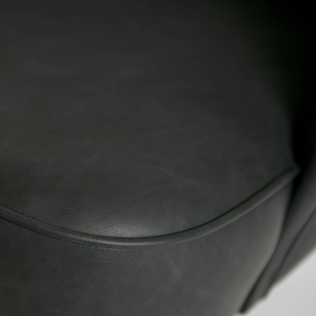 El sillón Vogue está equipado con una hermosa piel reciclada (100% PES) en color negro. Las patas son de metal, pintadas de negro.