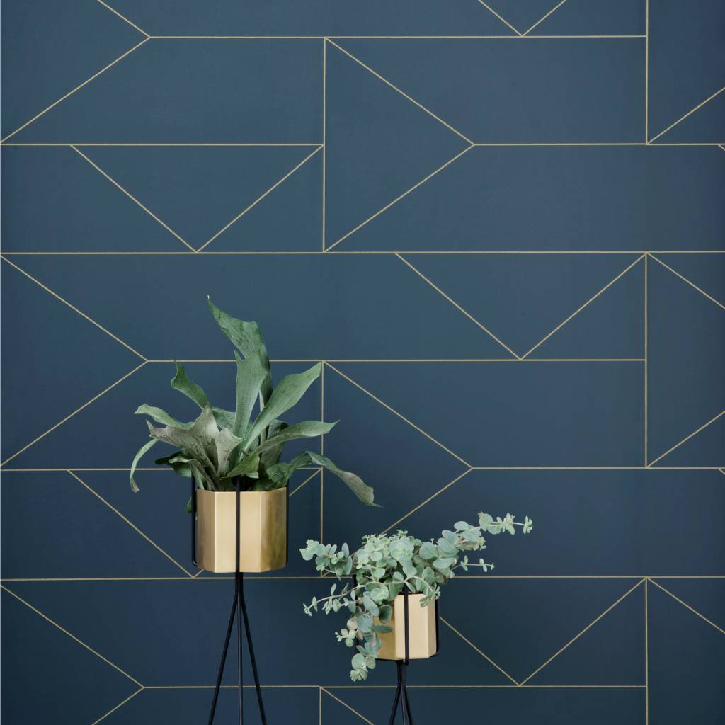 Modificar una pared con este elegante fondo de pantalla de Ferm Living. Este fondo de pantalla de color azul oscuro tiene un patrón de líneas de oro. El fondo de pantalla líneas puede sutilmente sin añadir mucho que hacer en el interior. Hermoso! weitere Informationen...
