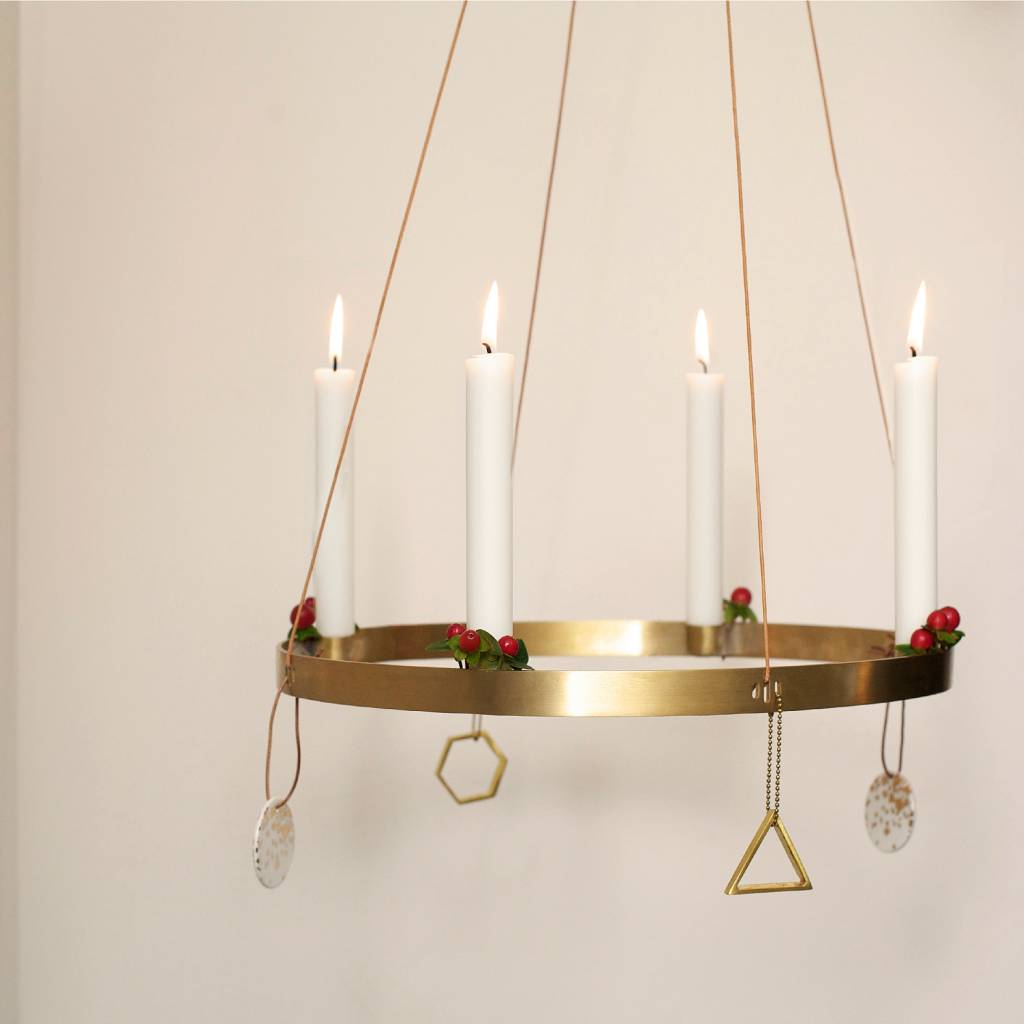 Esto no es sólo una lámpara de araña. Este círculo de velas de Ferm Living es multifuncional. Poner la vela en la mesa con un montón de hermosas velas, o colgar la lámpara de araña con las tiras de cuero incluida. Qué dulce es la ... weitere Informationen...