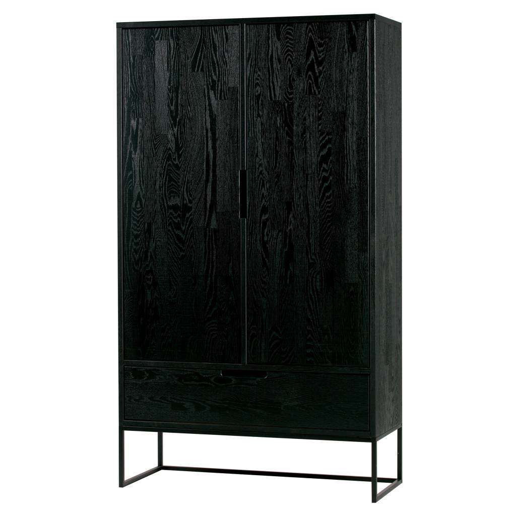 El WOOOD Silas 2 Door Cabinet [FSC] tiene un aspecto moderno y ofrece un lugar elegante para guardar sus pertenencias. El armario de 2 puertas Silas está hecho de roble macizo con una superficie cepillada que está pintada en el color blacknight. La base (H: 20 cm) está hecha de metal y pintada de negro.