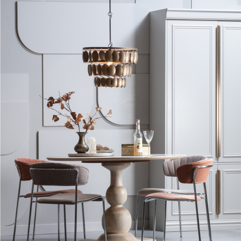 La lámpara colgante Moondust tiene el diseño de un candelabro clásico, ¡pero con una bonita actualización! ¡Esta hermosa lámpara dorada iluminará cualquier techo! También disponible en versión lámpara de sobremesa. weitere Informationen...