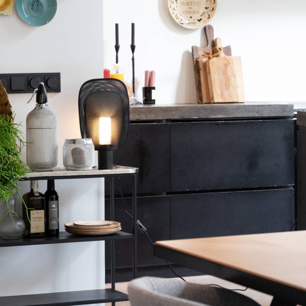 Esta lámpara de mesa Mai van Zuiver es una imagen real. Cuando enciendes la lámpara, atraviesas el orificio de la pantalla con un efecto de iluminación especial. La lámpara está hecha de metal negro con recubrimiento en polvo. weitere Informationen...