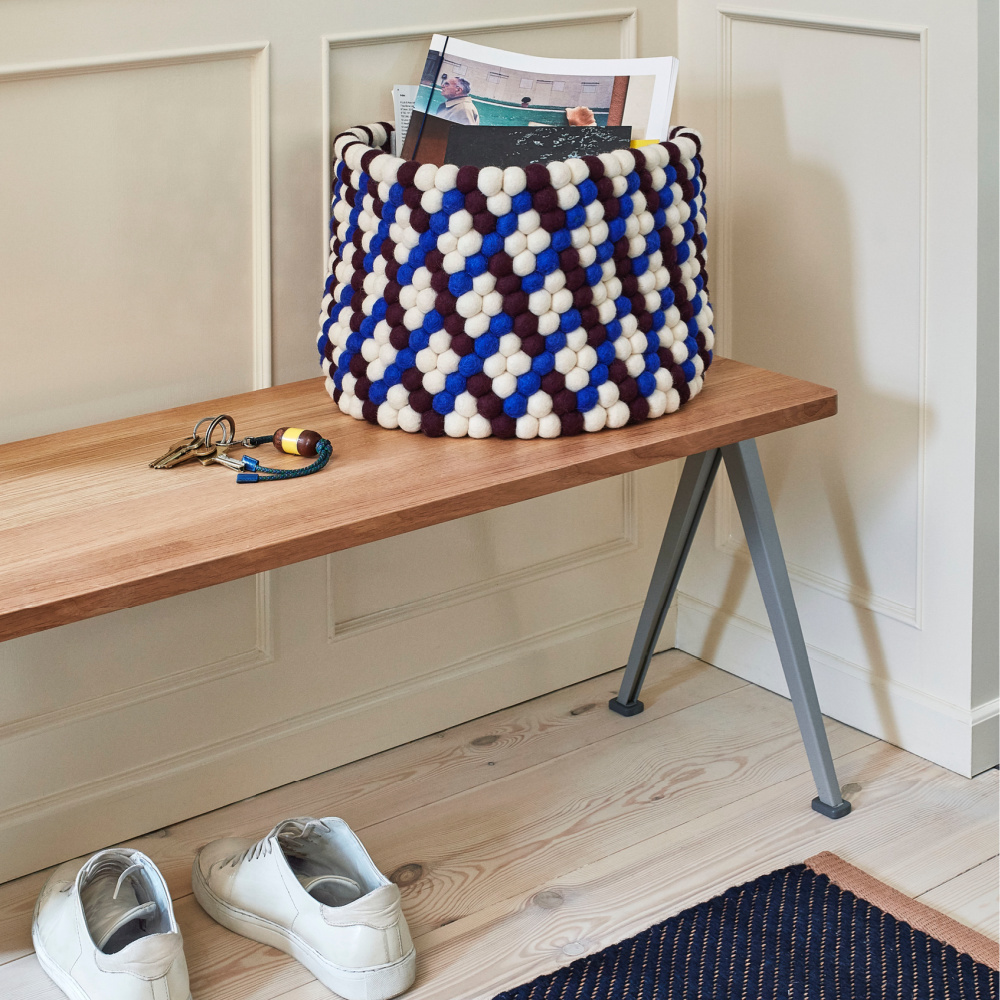 ¡Guauu! Cientos de bolas de fieltro juntas forman un patrón gráfico fresco y colorido. Canasta de almacenamiento Bead Basket de Hay es una solución de almacenamiento decorativa para cualquier interior. Disponible en cinco variantes diferentes. weitere Informationen...
