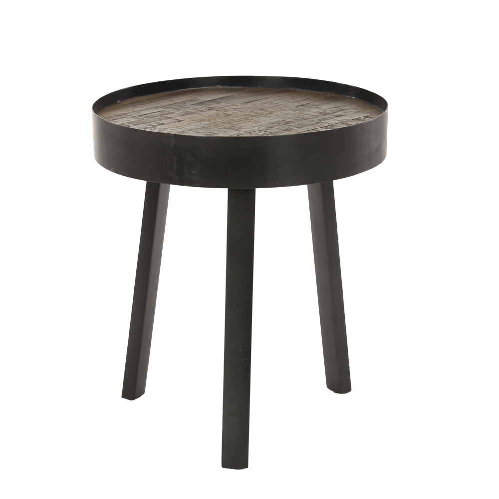 Esta hermosa mesa auxiliar tiene un diseño simple y se adapta perfectamente a cualquier interior gracias a los colores neutros. La parte superior de la mesa es de madera de teca gris, rayada y el marco es de metal gris. weitere Informationen...