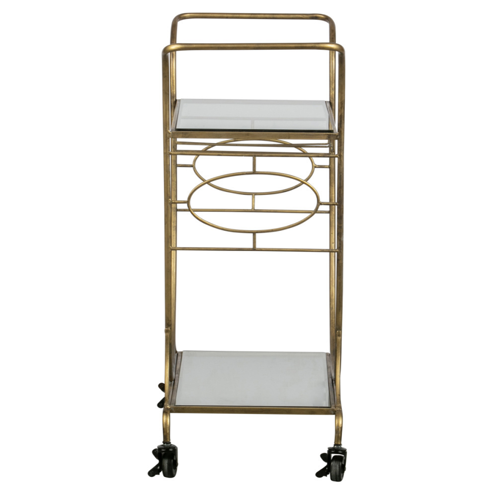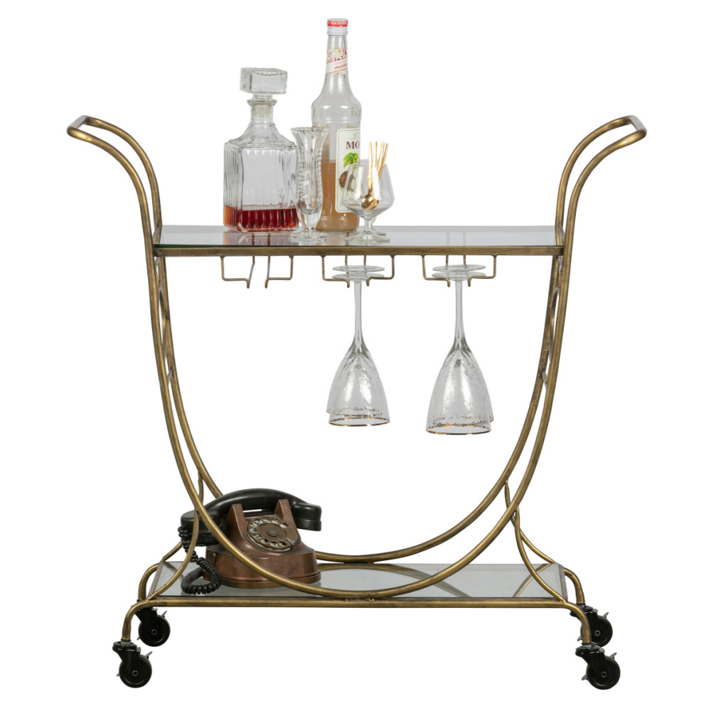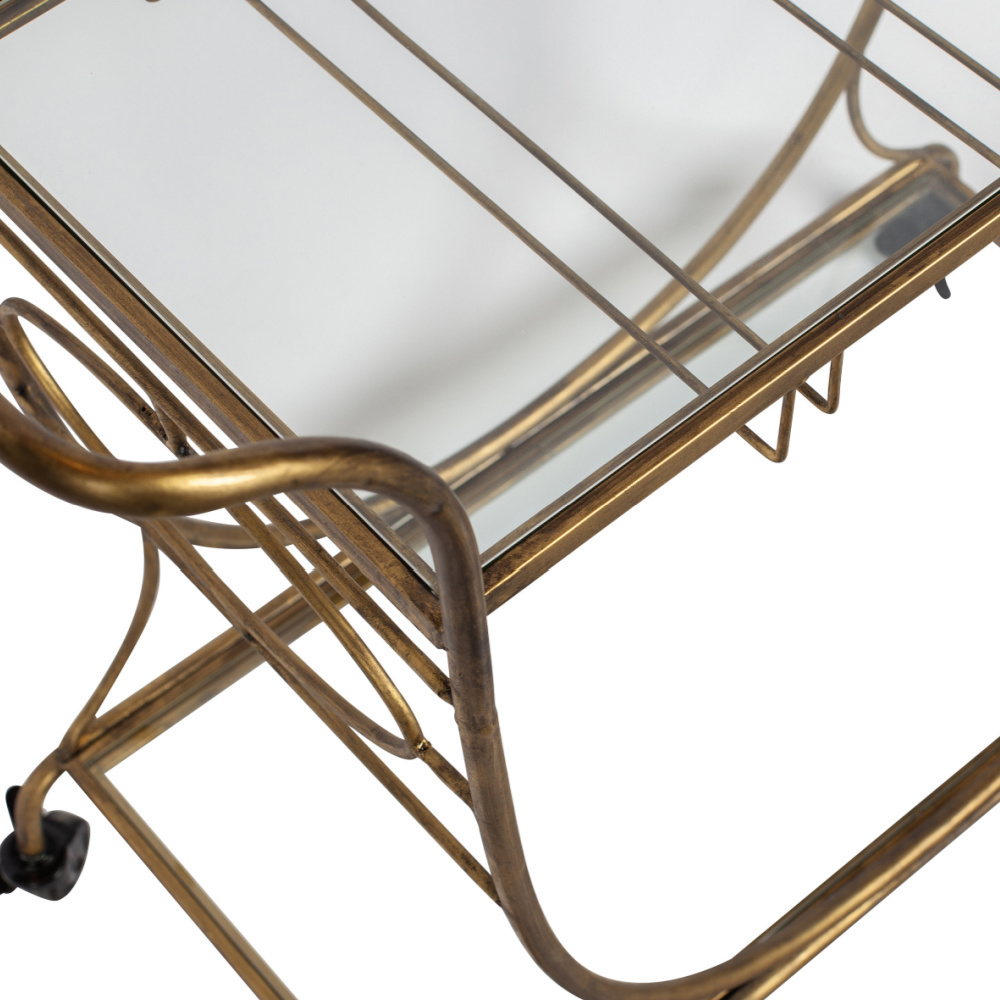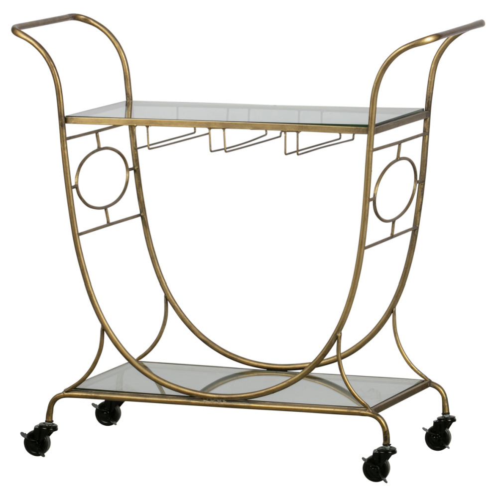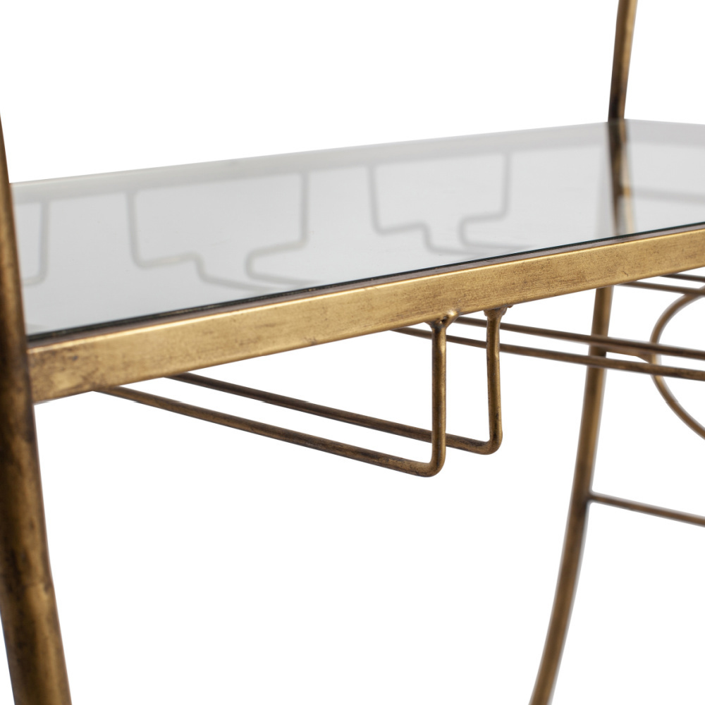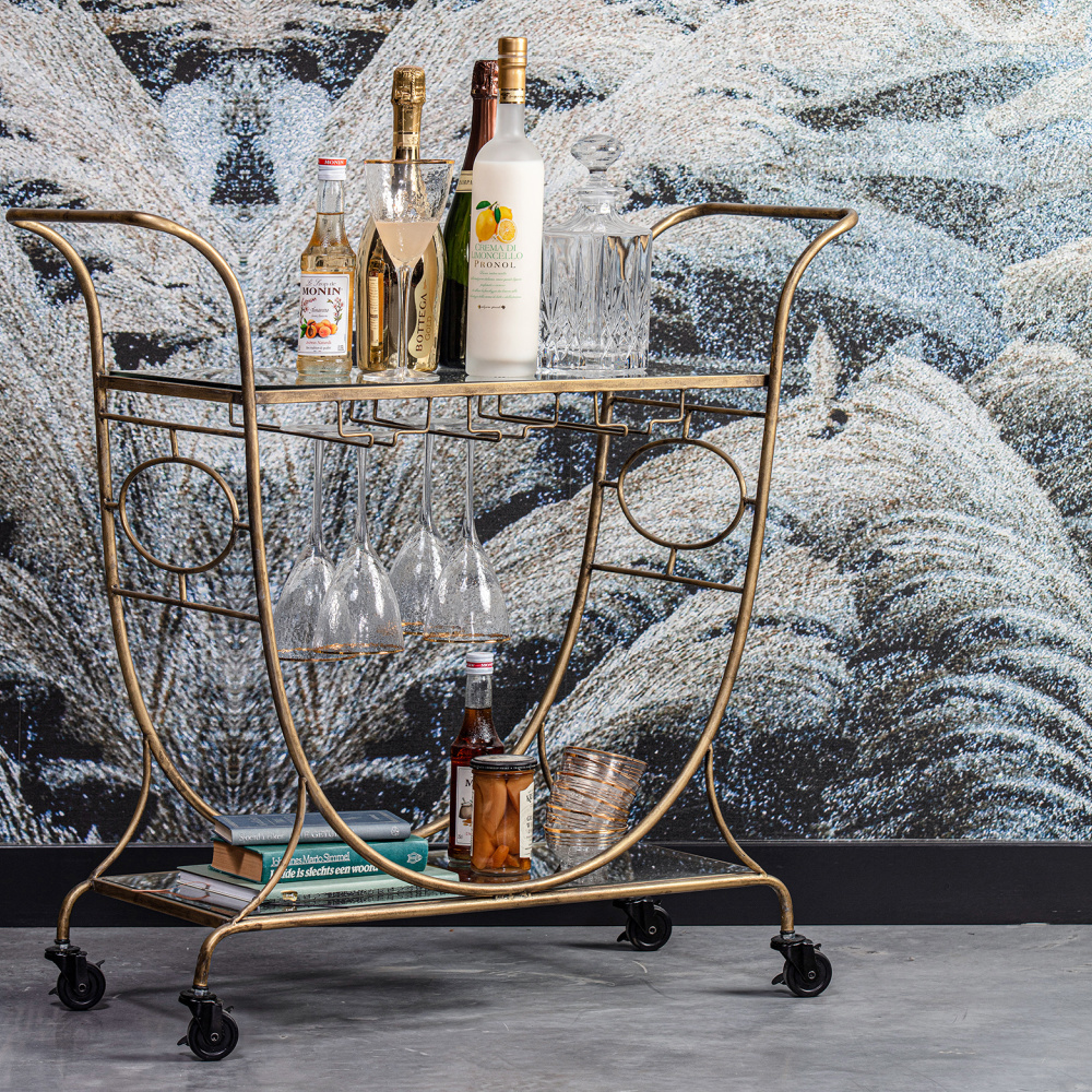 El trolley Decadent es bonito y sobre todo práctico. Tres estantes para colgar vasos, cada estante puede contener 3 vasos, también 2 estantes de vidrio. ¡Las ruedas se pueden bloquear para que las bebidas no desaparezcan! weitere Informationen...