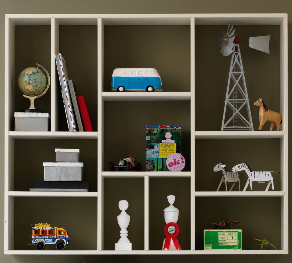 Compartimentos grandes y pequeños en el nuevo caso de vtwonen. Todo lo que te gusta, lo presentas en esta caja gris de pino macizo. También disponible en blanco. weitere Informationen...