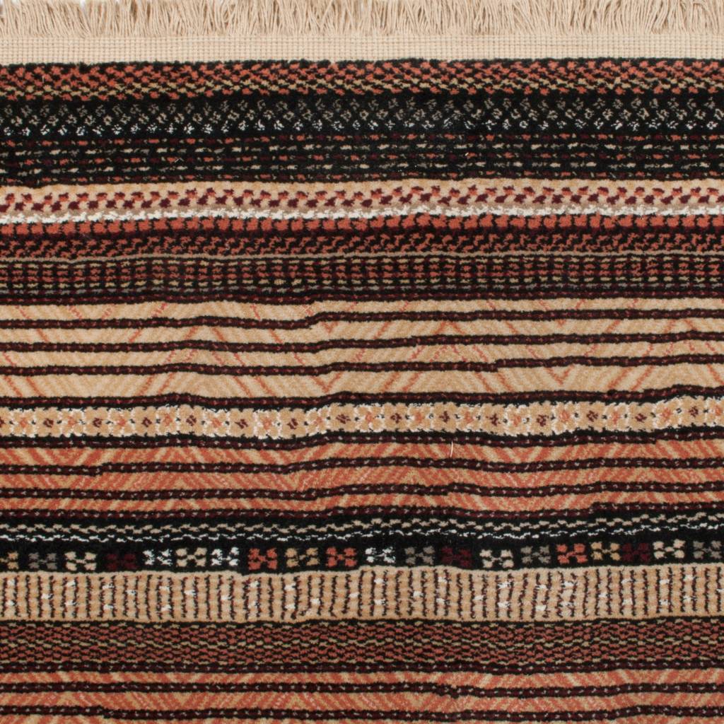 izquierda - Alfombra tejida a máquina con franjas decorativas - Polipropileno ción Combi Decolan y viscosa, una apariencia similar a la lana con un brillo sedoso