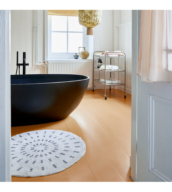 Beau tapis de bain rond en coton de HK living. Le tapis de bain a un fond antidérapant pour le maintenir en place. Alors entrez pieds nus dans la salle de bain ! weitere Informationen...
