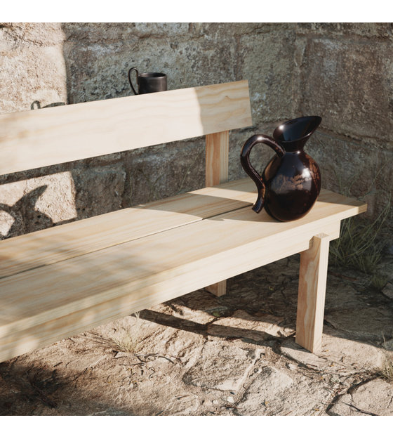 Le banc Peka de Ferm Living est fabriqué en bois de pin durable et a un aspect brut. Savourez une tasse de café ou de thé qui peut être placée sur une étagère étroite derrière le dossier. Idéal pour profiter du silence ou de la compagnie ! weitere Informationen...