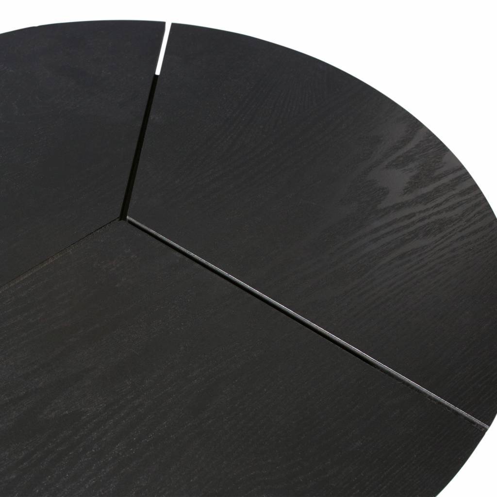 La nouvelle table d'appoint design Rodi M. est une nouveauté de la collection WOOOD exclusive. Le dessus de la table d'appoint Rodi est une combinaison de bois de frêne et de MDF et est peint en noir mat. Le plateau du plateau se compose de trois parties, ce qui confère à la table un caractère très particulier. L'épaisseur du plateau est de 1 cm et la taille moyenne de 48 cm de diamètre.